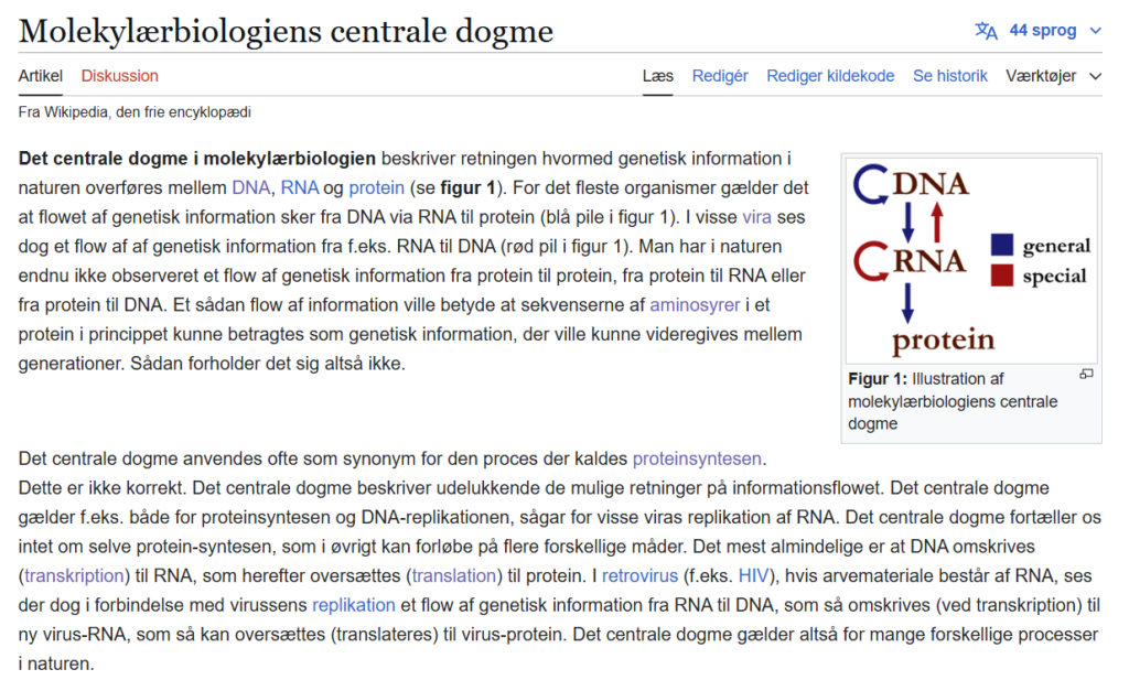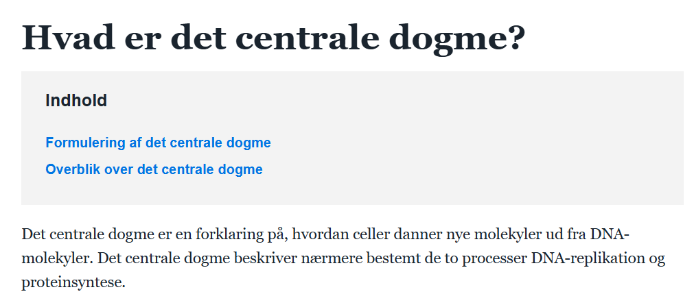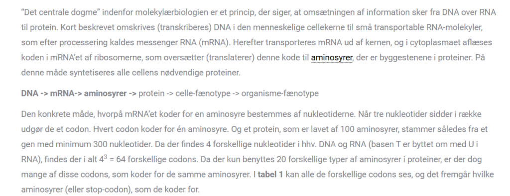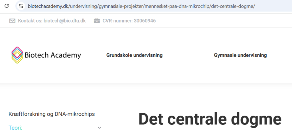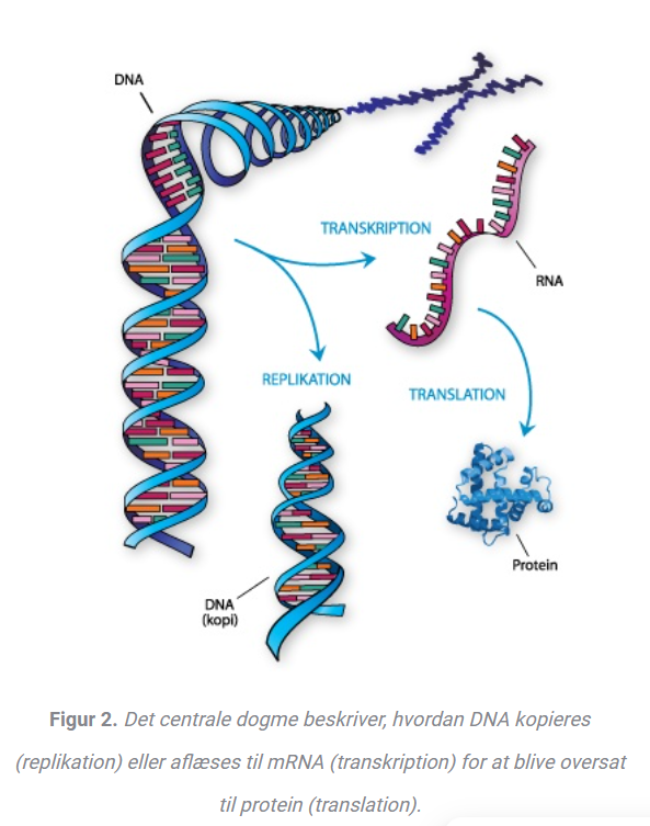 Se hvordan fonderscience.com kort definerer begrebet/hypotesen, så det forhåbentligt er nemmere for eleverne at forstå og at huske: Det Centrale Dogme.