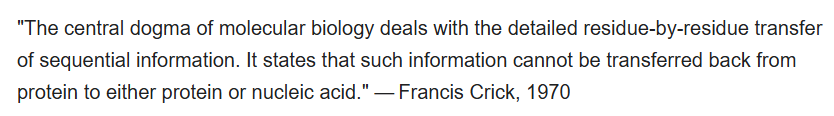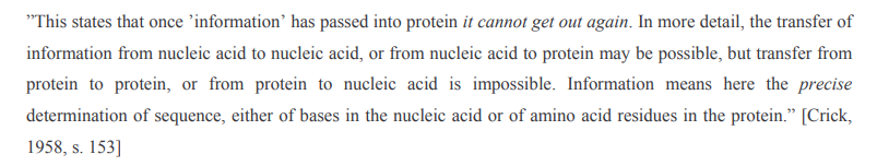 “Det Centrale Dogme” er vist nok udtænkt af Francis Crick helt tilbage i 1958, og i hvert fald offentliggjort i 1970: