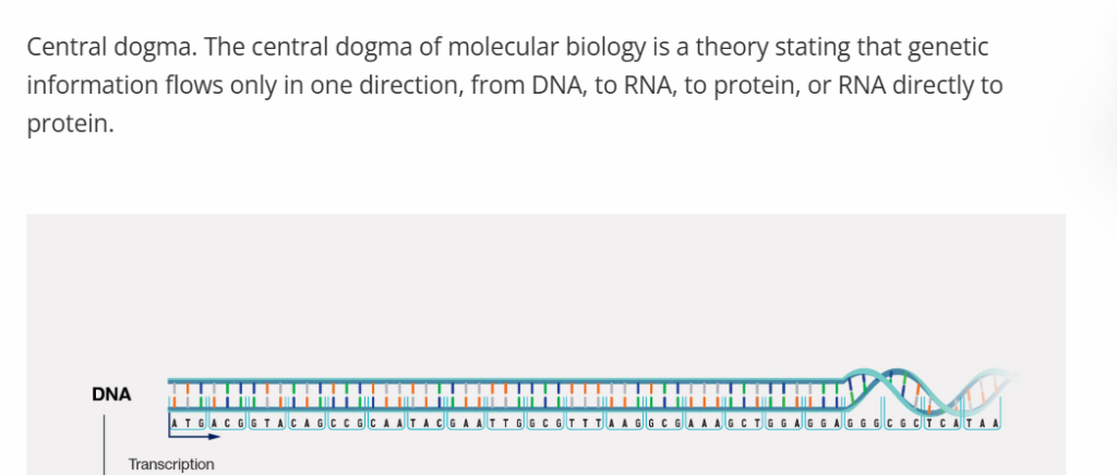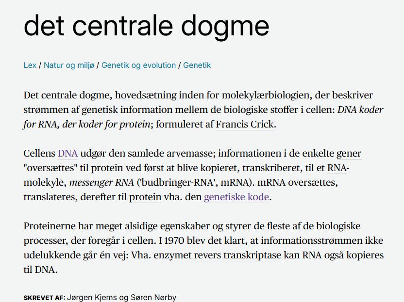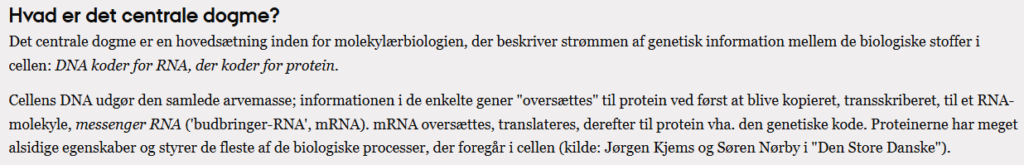 Så vidt fonderscience.com kan bedømme, er alt for mange (også engelske /amerikanske) hjemmesider kommet til den konklusion, at det er DNA transcriptionen / translationen, der er “dogmen”.